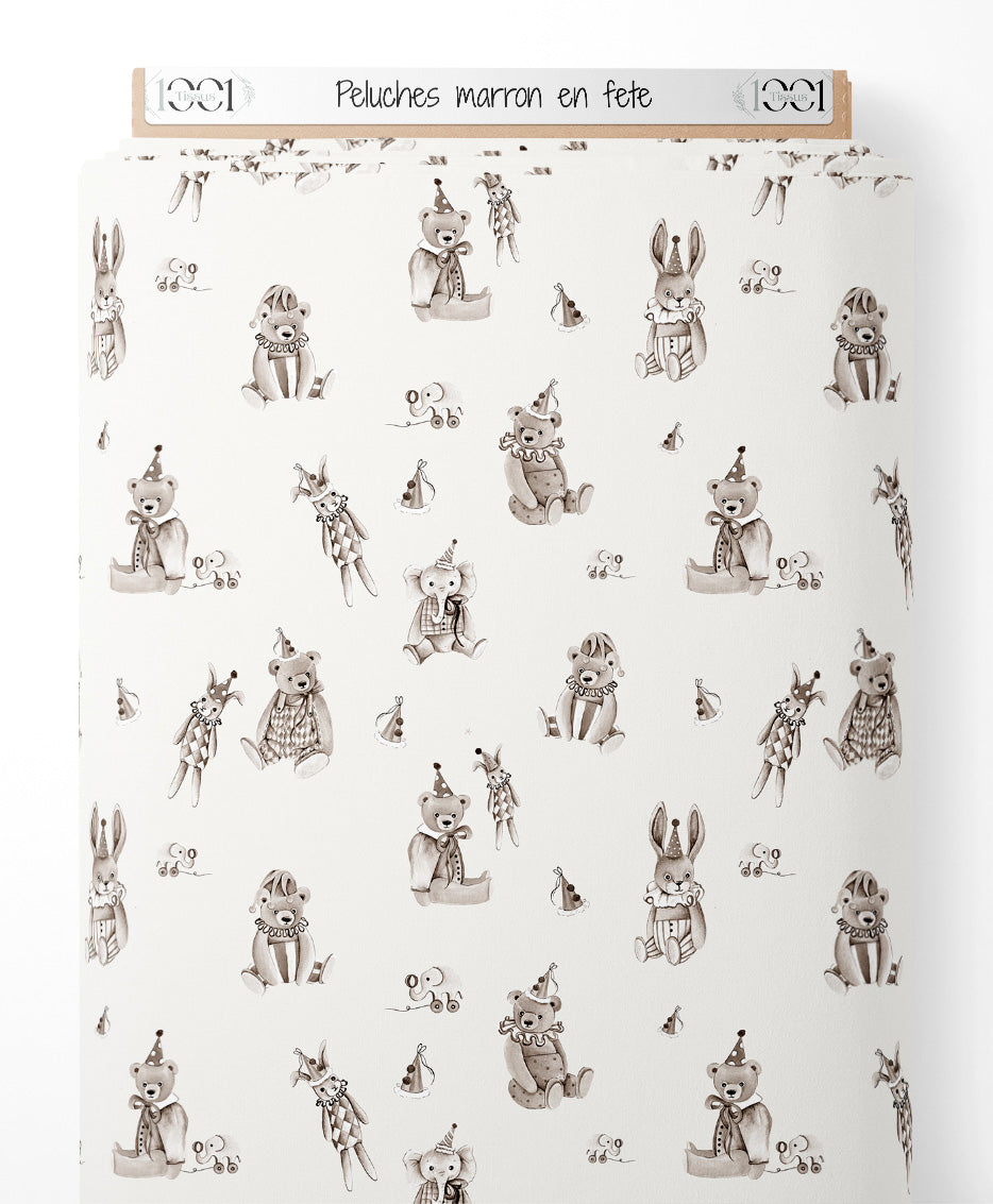 Tissu - Peluches marron en fête