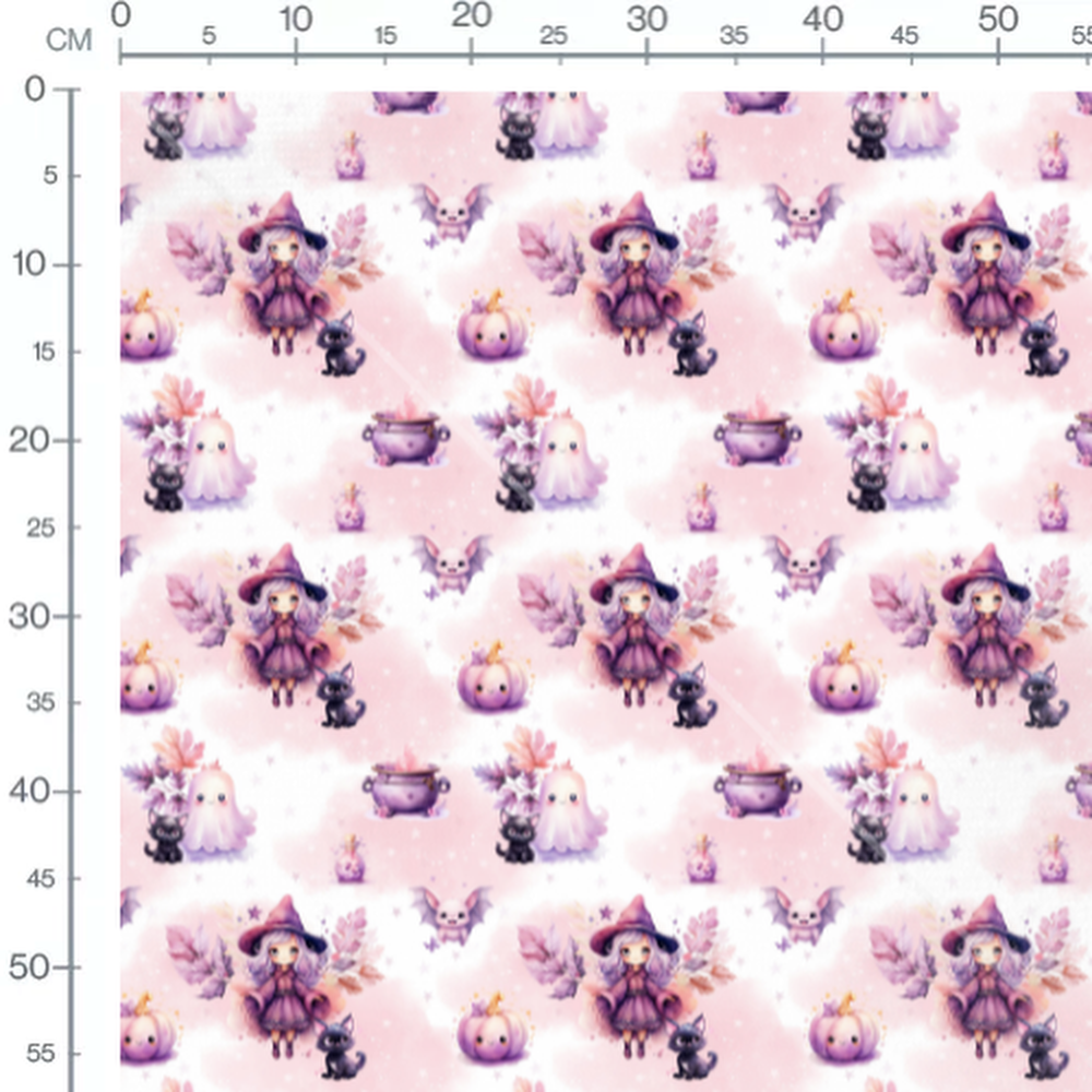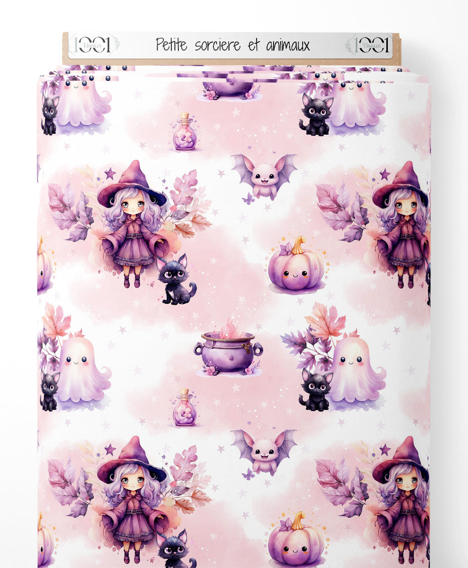 Fantômes et chauves-souris ajoutent une touche mystique. Flacons et étoiles complètent le thème magique. Les couleurs dominantes sont le rose, le violet et le noir.Les tissus