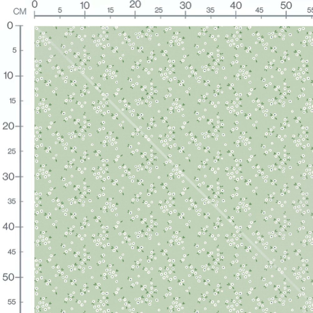 Tissu - Petites fleurs blanches sur vert