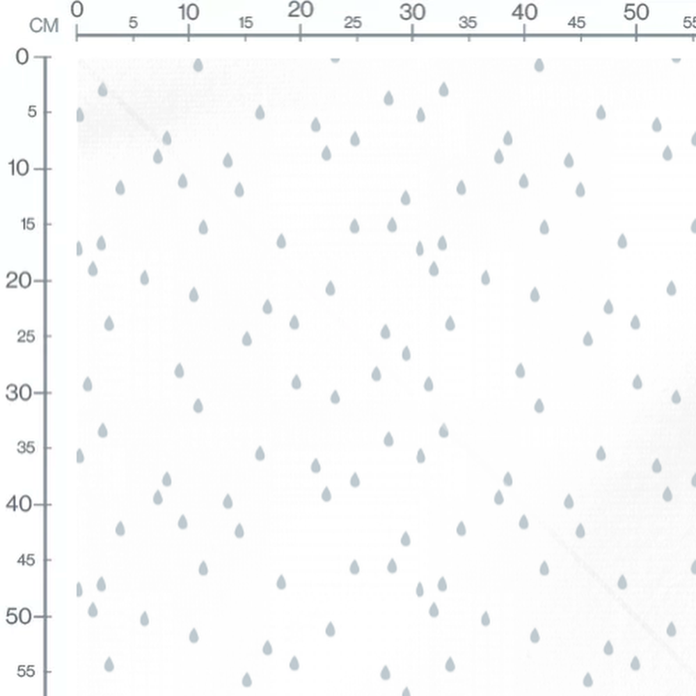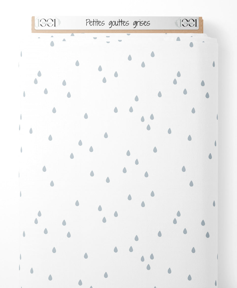 Les gouttes sont uniformément réparties sur toute la surface. Chaque goutte est de couleur grise et de forme ovale.Les tissus