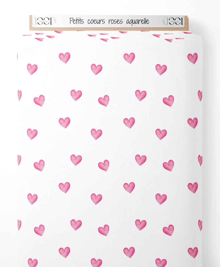Tissu - Petits cœurs roses aquarelle