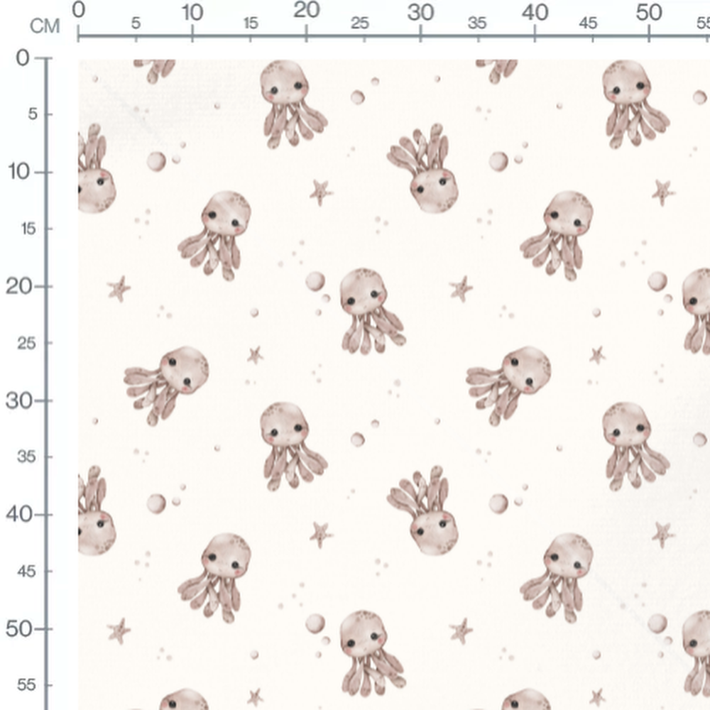 Les poulpes ont des expressions faciales adorables. Les étoiles de mer sont de couleur beige clair. Les bulles varient en taille et ajoutent une touche ludique.Les tissus
