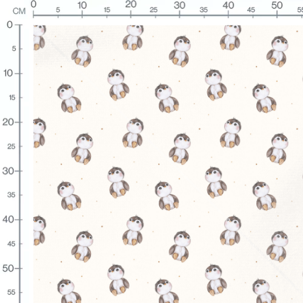 Les pingouins sont dessinés dans un style aquarelle avec des nuances de marron et blanc. Le fond crème est parsemé de petits points beige, ajoutant une touche délicate au motif.Les tissus
