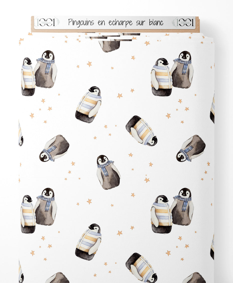 Tissu - Pingouins en écharpe sur blanc