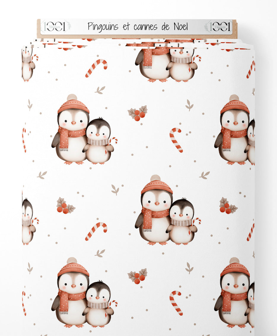 Tissu - Pingouins et cannes de Noël