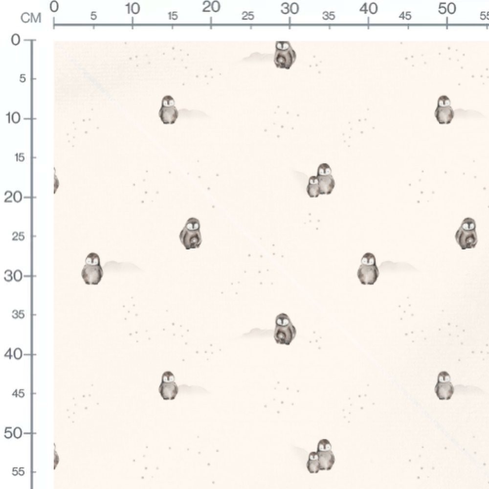 Les pingouins sont dessinés de manière simple et adorable. Le fond blanc met en valeur les petits détails gris des pingouins. Les points gris ajoutent une touche de texture au motif.Les tissus