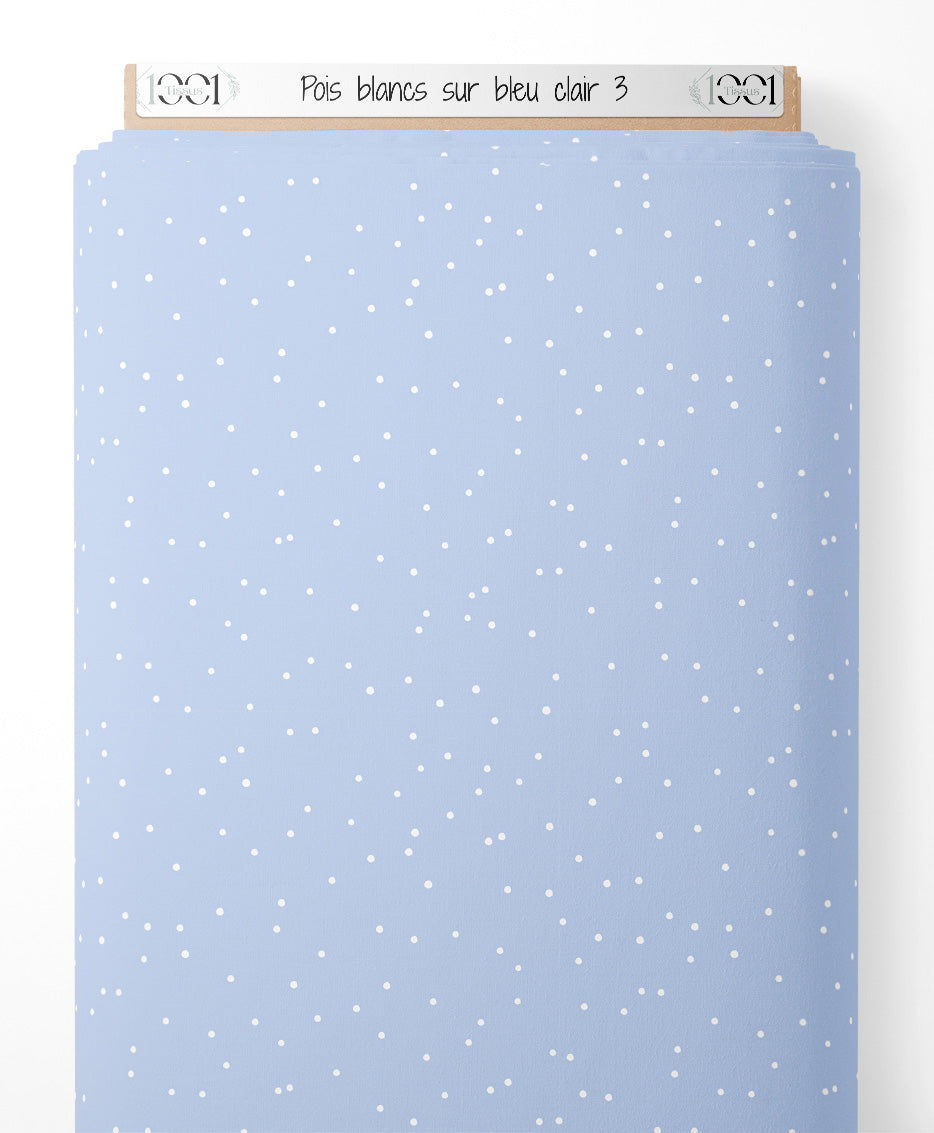 Pois blancs sur fond bleu clair. Tissu uni couleur bleu clair.Les tissus
