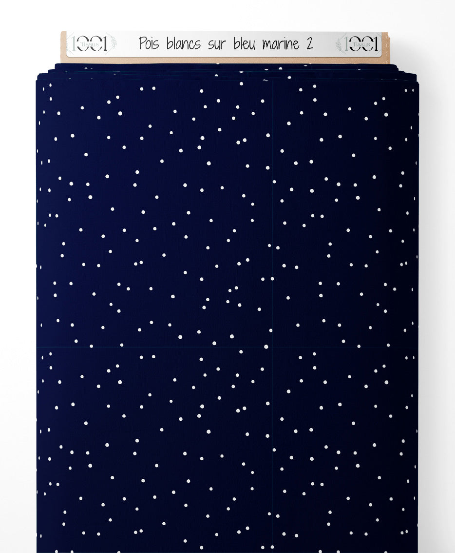 Tissu - Pois blancs sur bleu marine 2