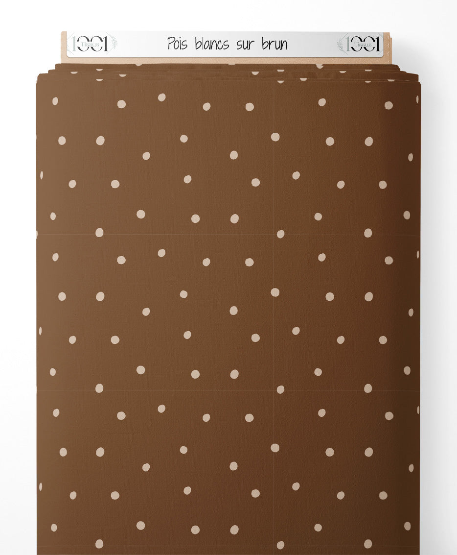 Pois blancs sur fond brun. Tissu uni couleur brun.Les tissus