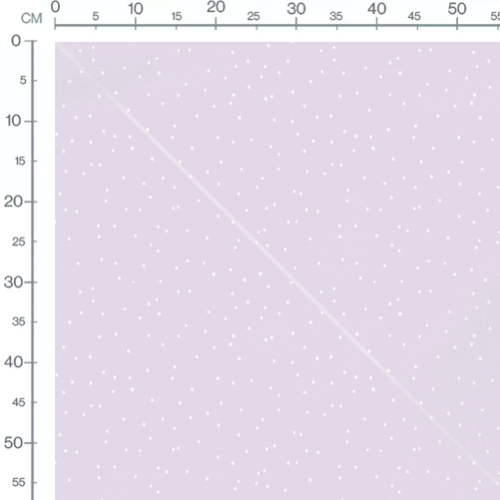 Les pois sont répartis uniformément sur le fond lilas. Le contraste entre le blanc des pois et le lilas du fond crée un motif délicat.Les tissus