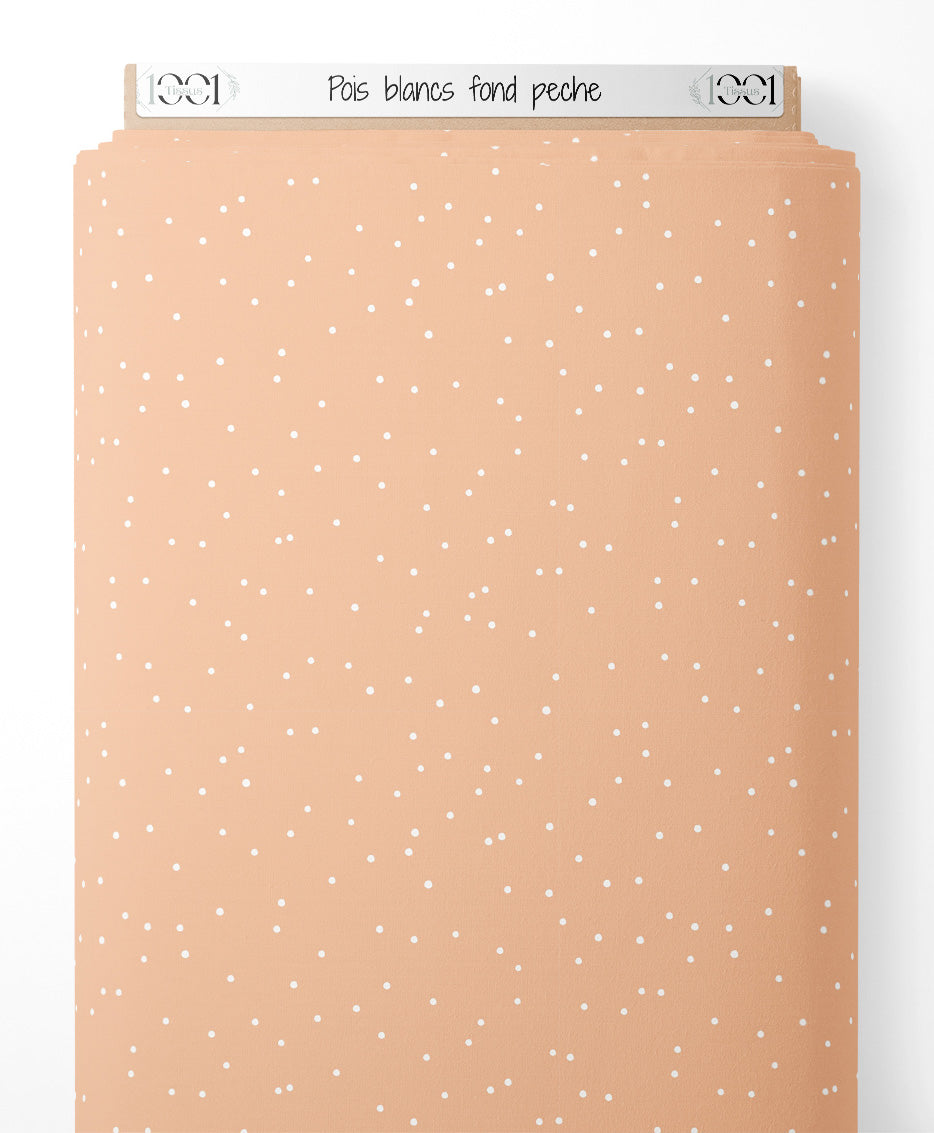 Pois blancs sur fond pêche. Tissu uni couleur pêche avec motifs de pois.Les tissus