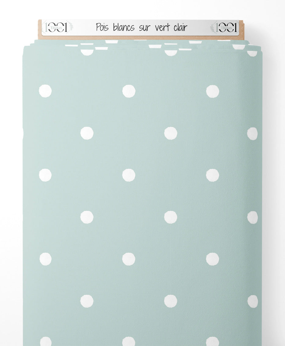 Les pois sont uniformément répartis sur le fond. Le vert clair du fond contraste avec les pois blancs.Les tissus