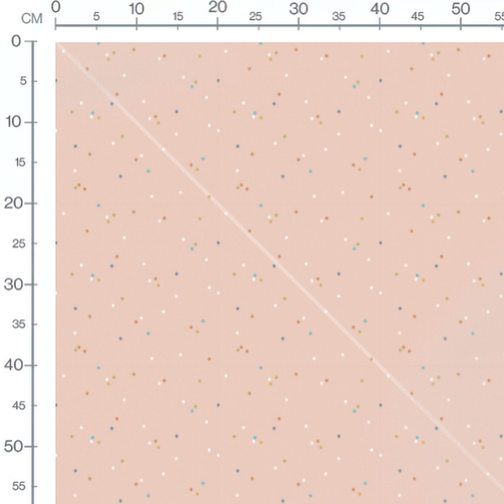 Les pois sont dispersés de manière aléatoire sur le fond. Chaque couleur de pois ajoute une touche de diversité au motif. Le fond rose pâle crée une ambiance douce et subtile.Les tissus