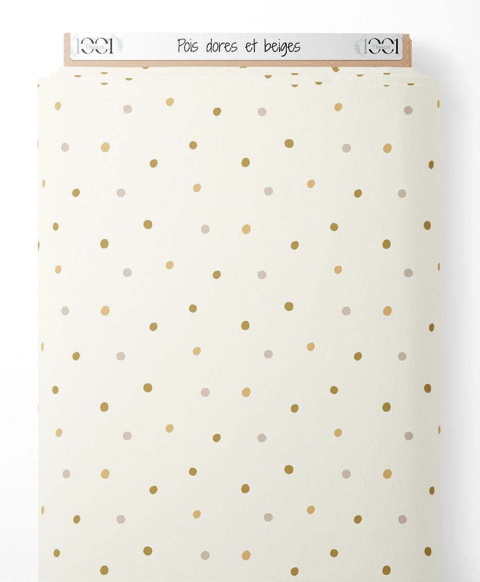 Pois dorés et beiges sur fond crème. Motif simple et répétitif de petites tailles.Les tissus