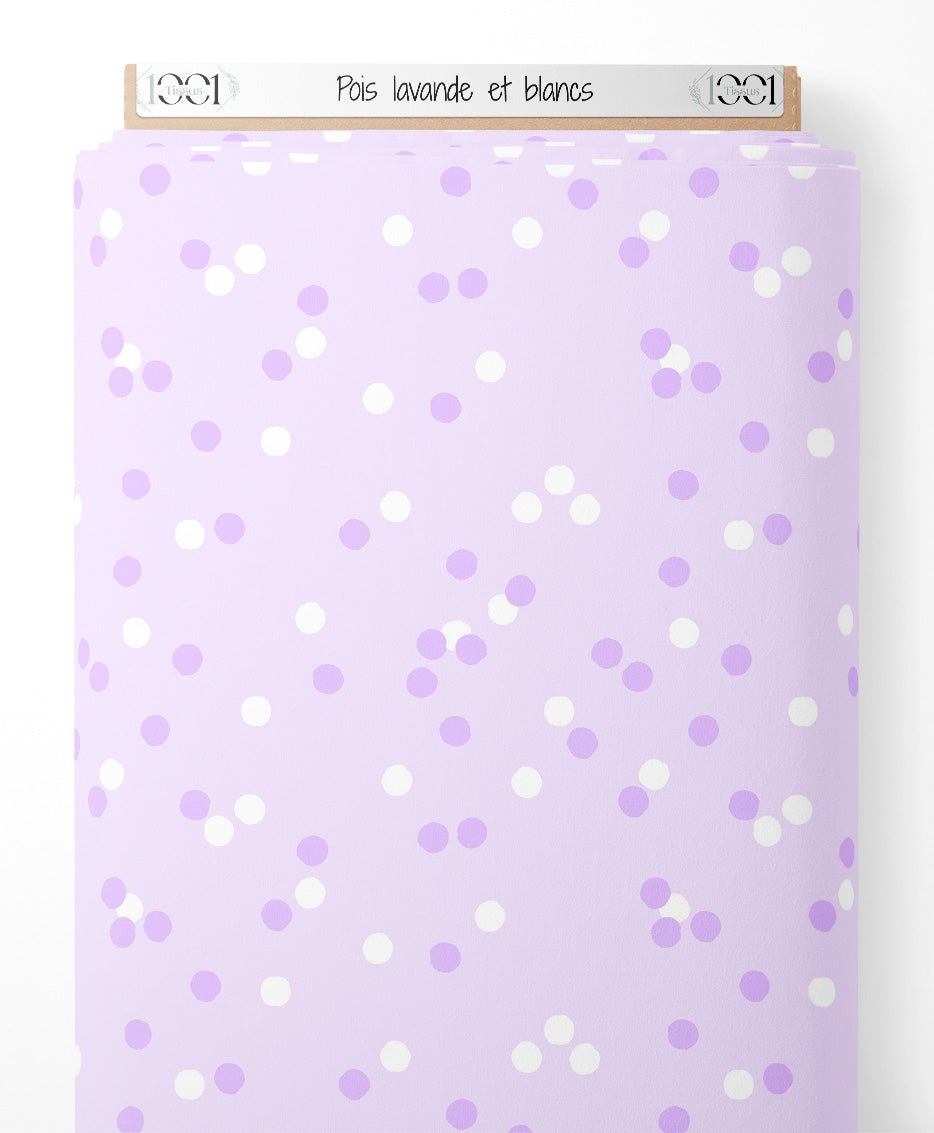 Tissu - Pois lavande et blancs