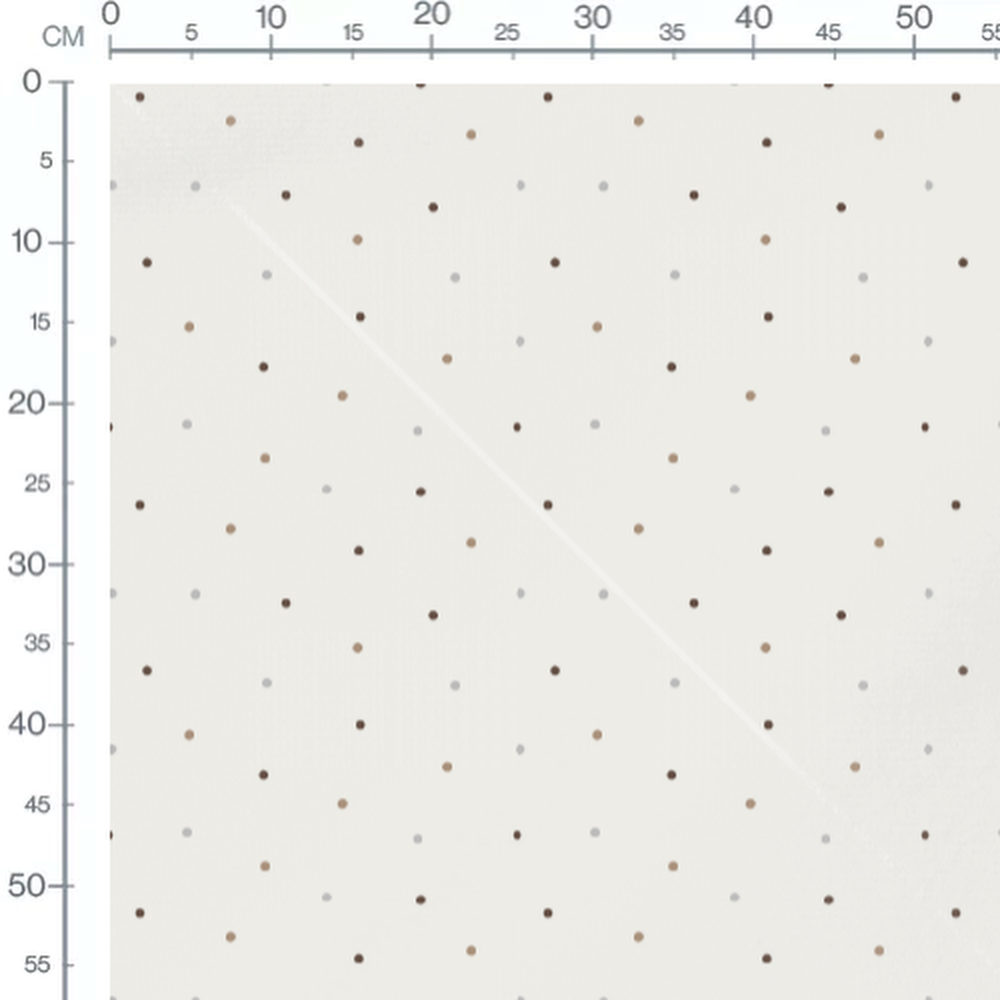 Pois marron, beige et gris sur fond blanc. Petits motifs ronds dispersés uniformément.Les tissus