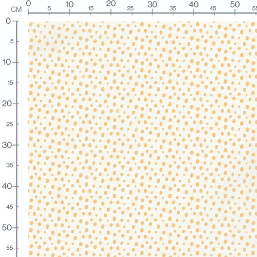 Pois irréguliers orange sur fond crème. Motif simple et répétitif.Les tissus