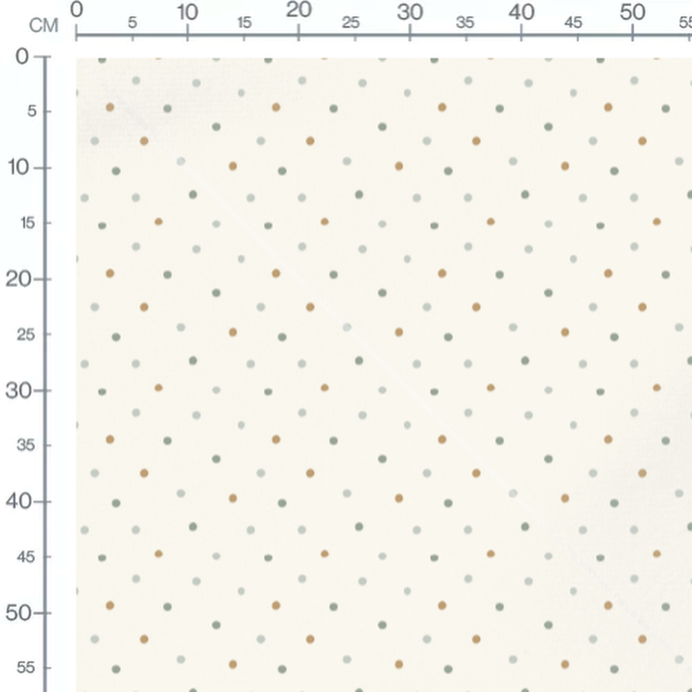 Les pois sont répartis uniformément sur le fond. Les couleurs des pois varient entre le vert, le marron et le gris, créant un motif doux et harmonieux.Les tissus