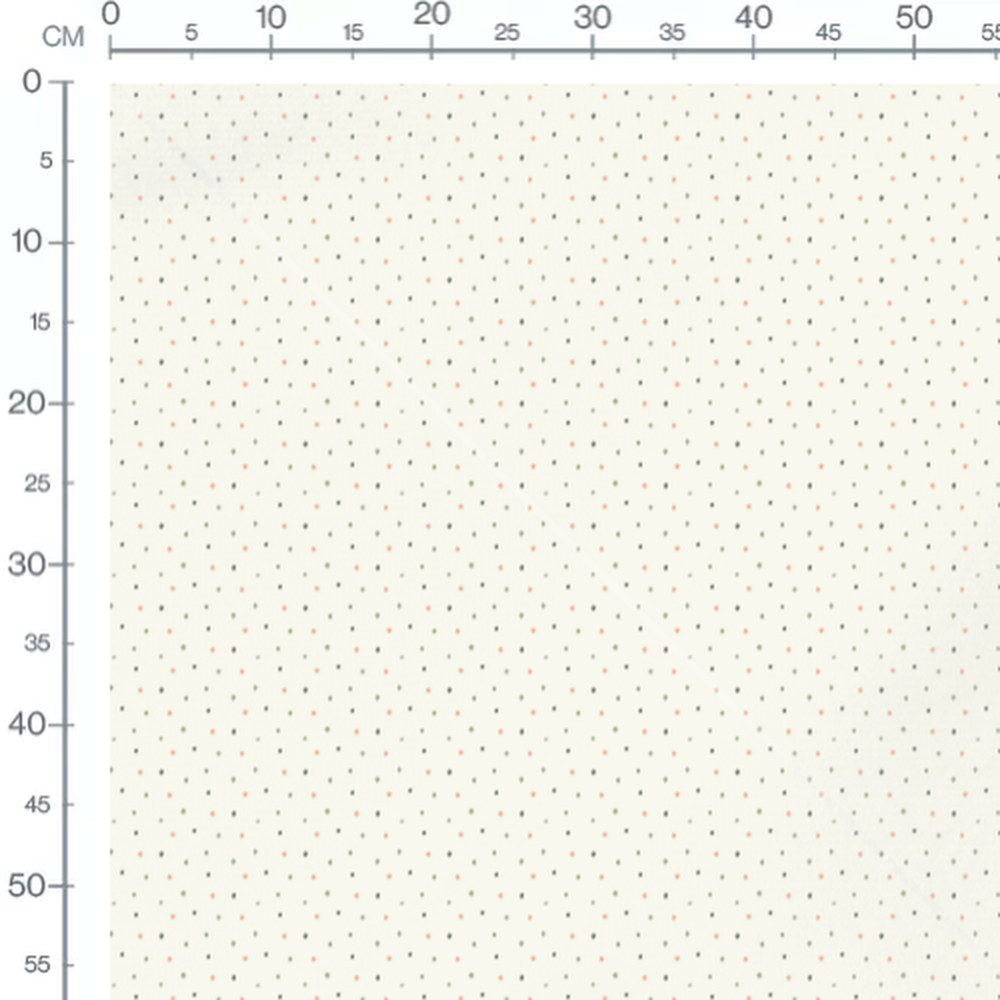 Pois verts et roses sur fond crème. Motif simple et répétitif de petits cercles colorés.Les tissus