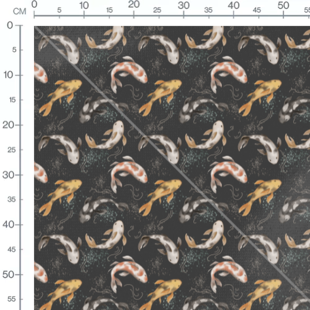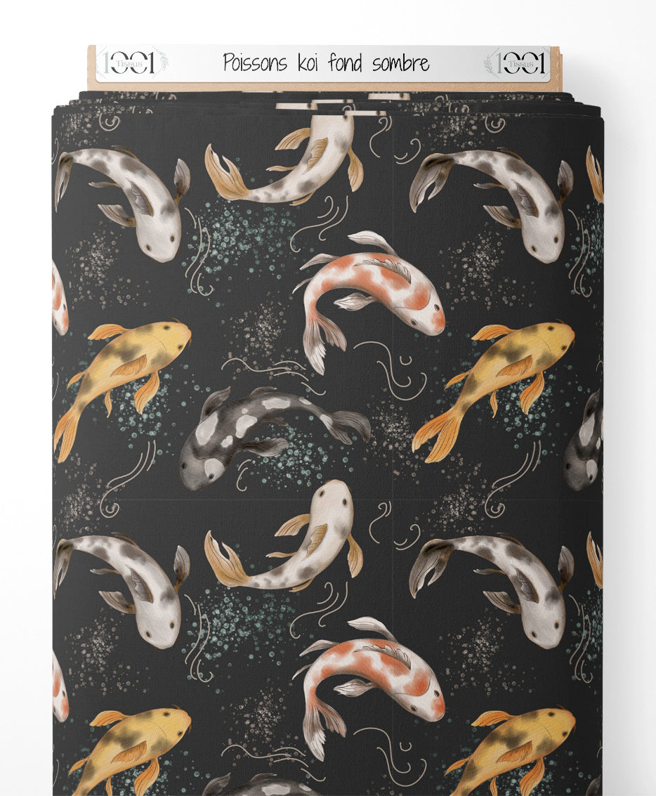 Tissu - Poissons koi sur fond sombre