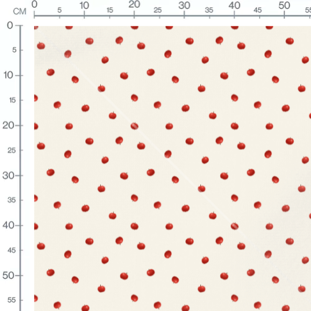 Les pommes sont d'un rouge vif et uniformément réparties. Le fond crème met en valeur la couleur des pommes.Les tissus