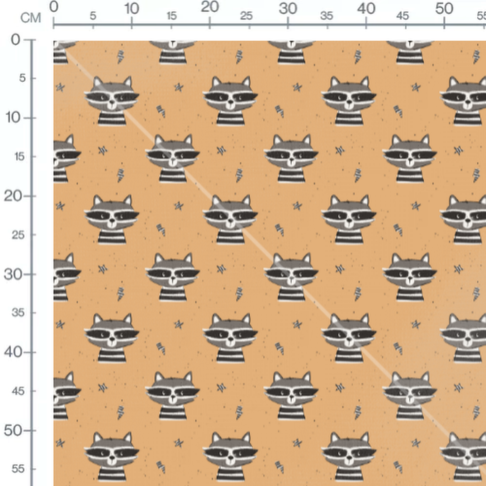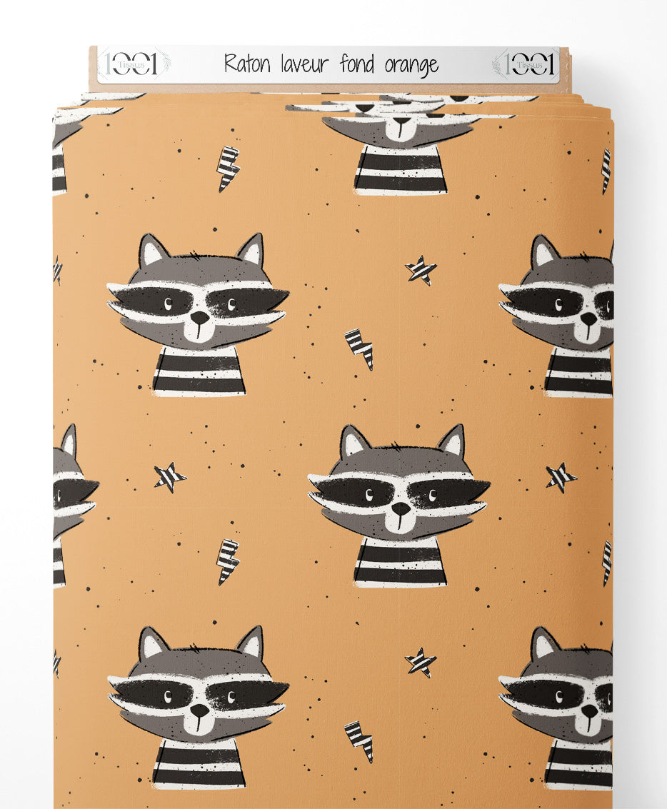 Le raton laveur porte un pull rayé noir et blanc. Des petites étoiles et éclairs ajoutent des détails au motif.Les tissus