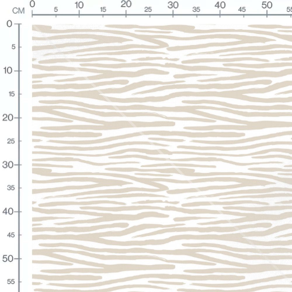Les rayures beige sont irrégulières et ondulées. Le fond blanc met en valeur le motif animalier.Les tissus