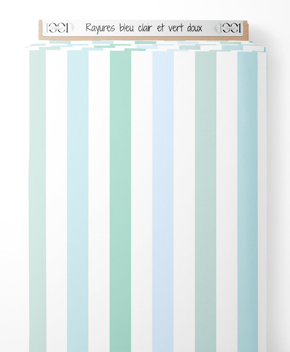 Les rayures sont de largeur égale et créent un motif répétitif. Les teintes pastel ajoutent une touche de douceur au design. Le fond blanc met en valeur les couleurs des rayures.Les tissus