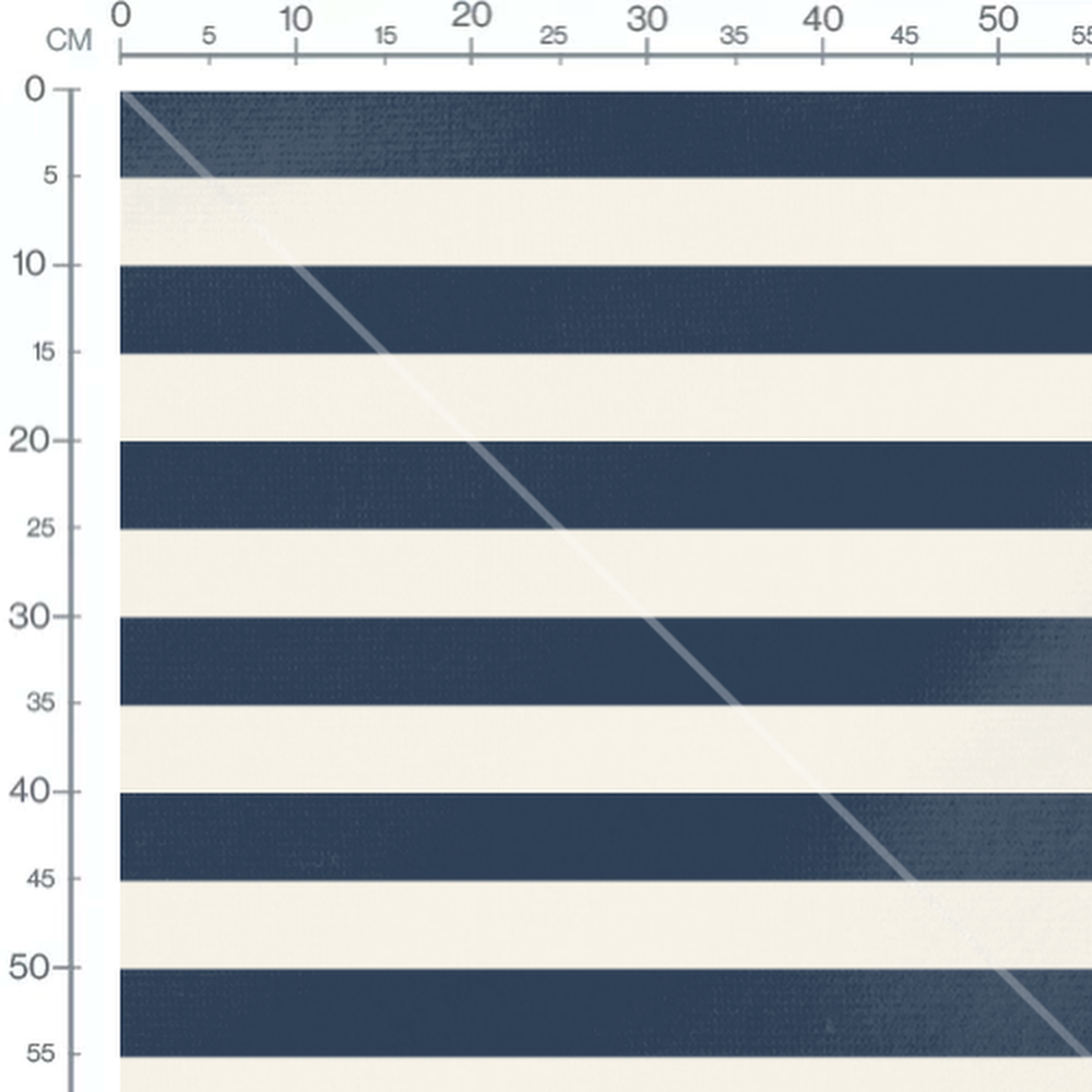 Les rayures sont larges et uniformes. Le bleu est foncé et contraste avec le crème clair. Le motif est simple et répétitif.Les tissus