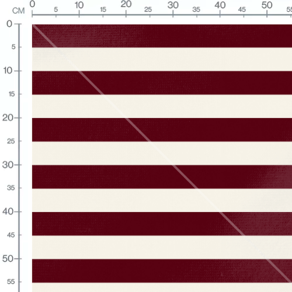 Les rayures bordeaux sont larges et régulières. Le fond crème contraste avec les bandes foncées.Les tissus