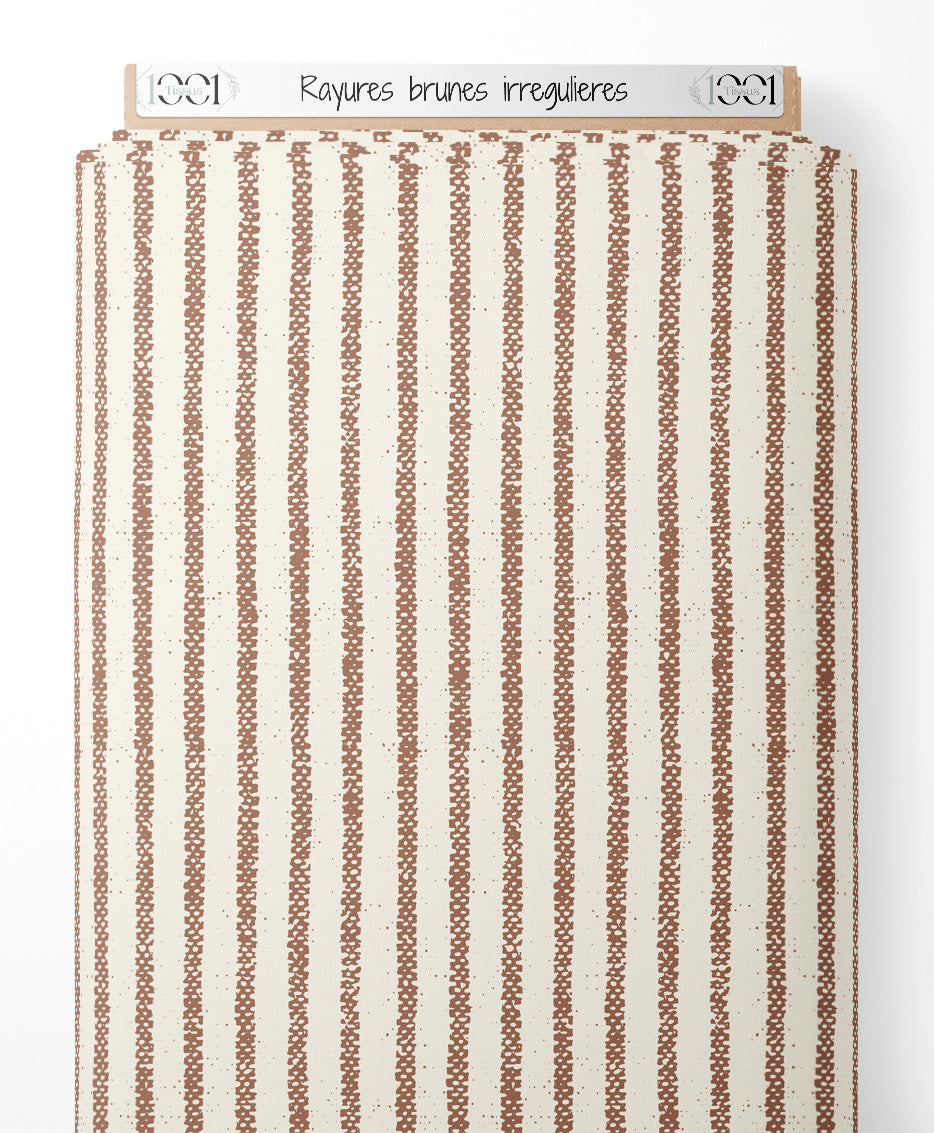 Les rayures brunes présentent une texture irrégulière. Le fond beige est parsemé de petits points bruns.Les tissus