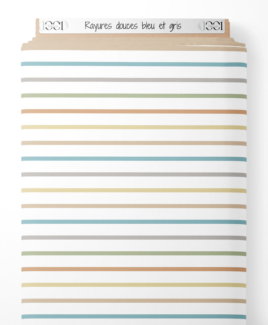 Tissu - Rayures douces bleu et gris