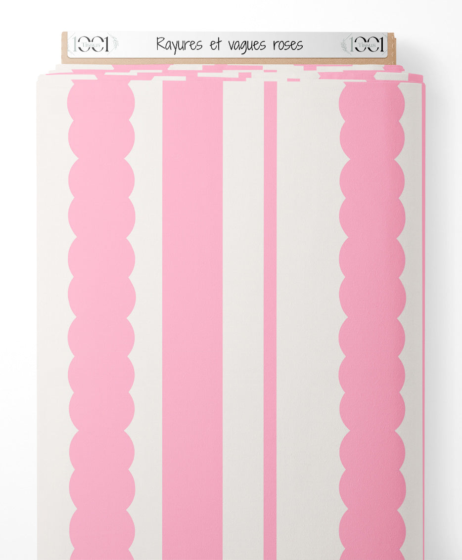 Les rayures sont larges et alternent entre le rose et le blanc. Les vagues roses ajoutent une touche dynamique au motif.Les tissus