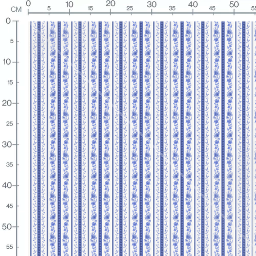 Tissu - Rayures florales bleues alternées
