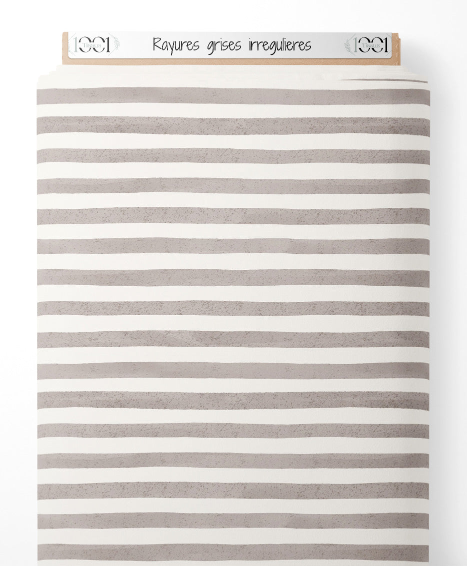 Les rayures grises présentent une texture légèrement granuleuse. Le fond blanc met en valeur les nuances de gris des rayures.Les tissus