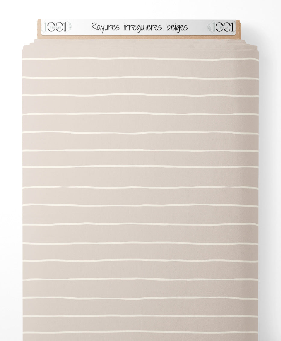 Rayures irrégulières blanches sur fond beige. Tissu uni couleur beige.Les tissus