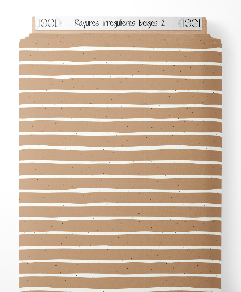 Les rayures beiges varient en épaisseur et en forme. Les taches noires ajoutent un effet moucheté subtil.Les tissus