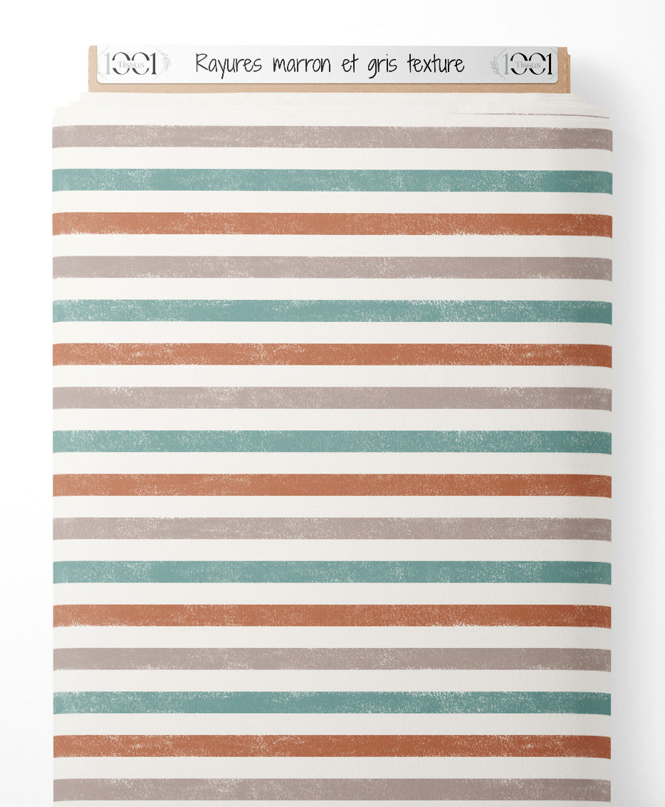 Rayures texturées marron, vert et gris sur fond blanc. Alternance de couleurs avec effet légèrement usé.Les tissus