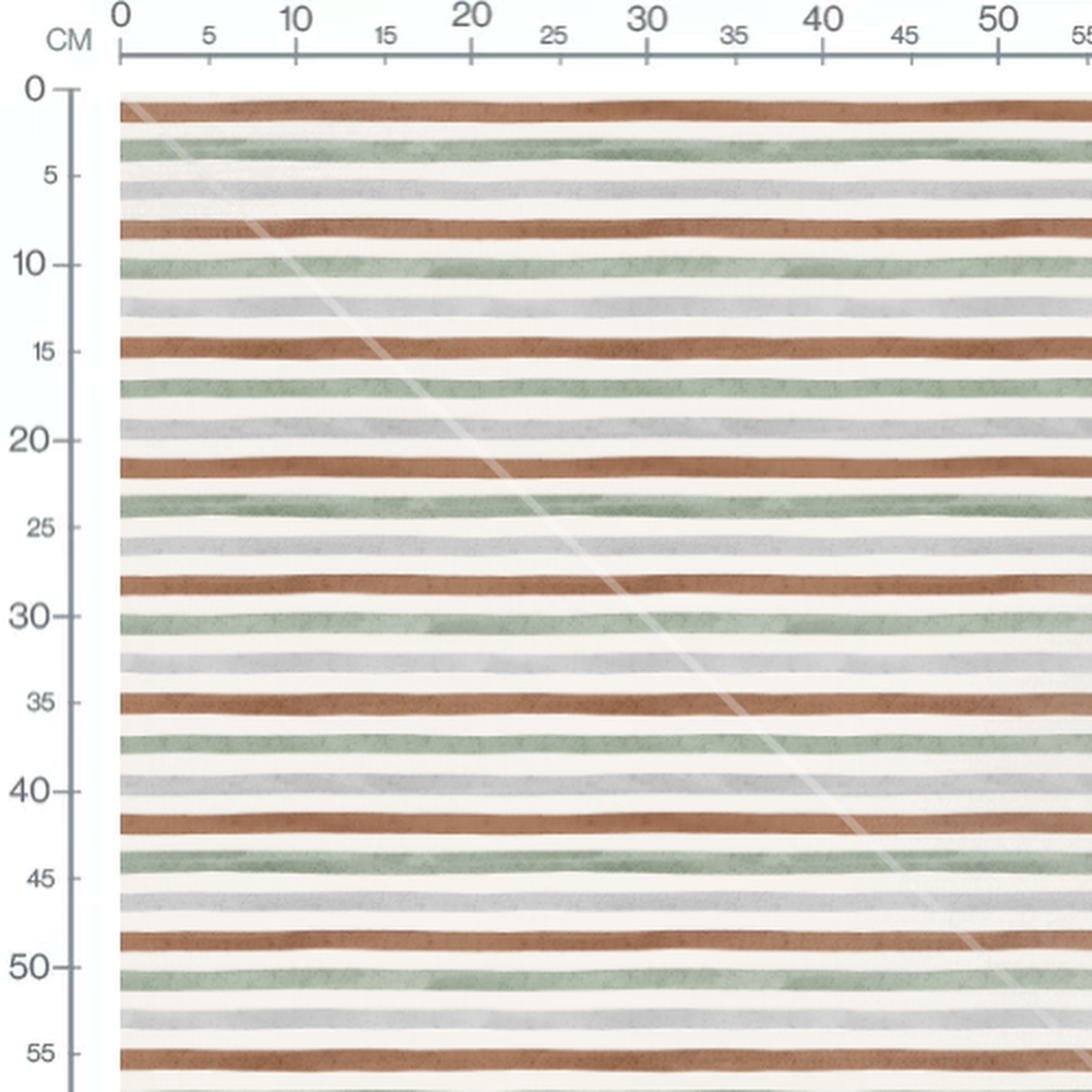 Les rayures marron sont alternées avec des rayures vertes et grises. Chaque bande est d'une couleur unie et contraste avec le fond blanc.Les tissus