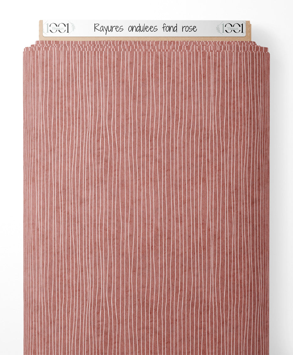 Les rayures blanches créent un effet de mouvement sur le fond rose. Le motif est simple mais ajoute une touche dynamique au tissu.Les tissus