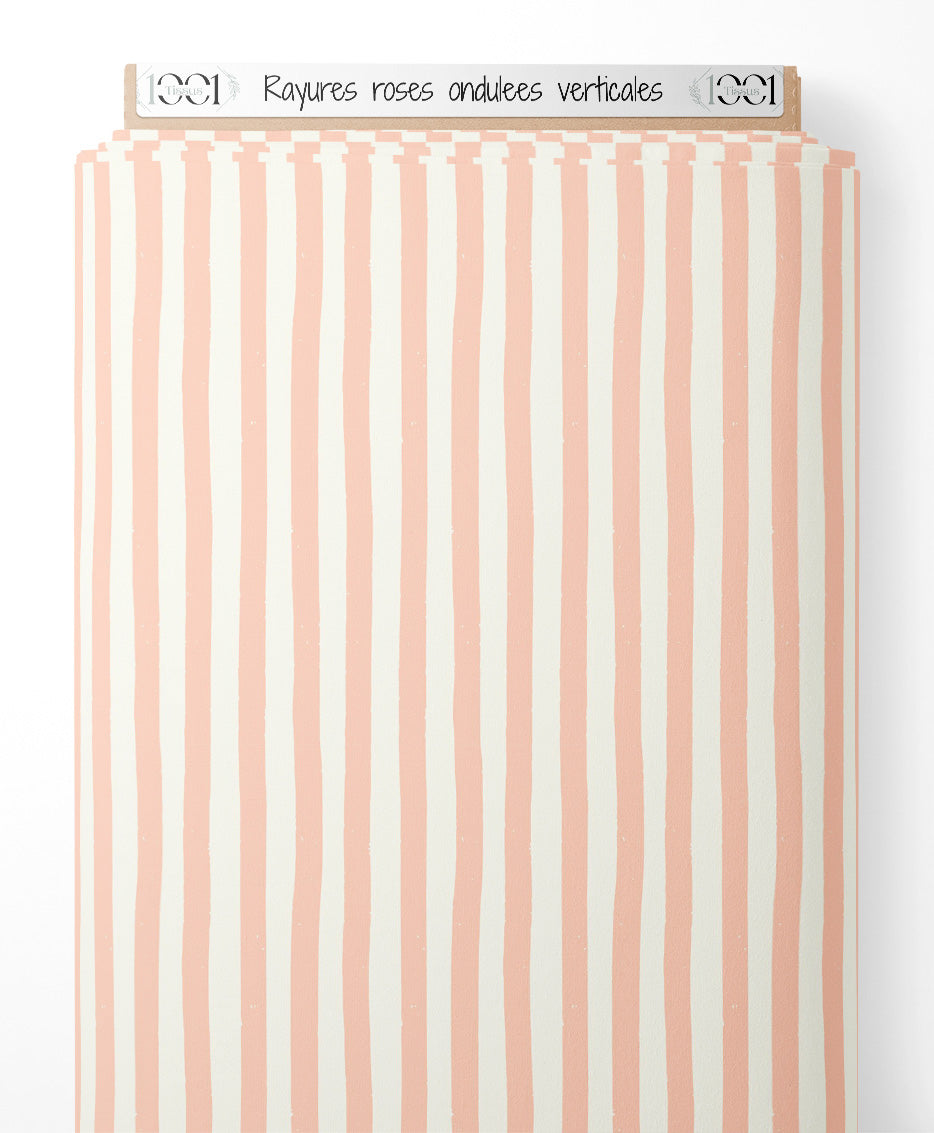 Les rayures roses sont légèrement ondulées, ajoutant un effet visuel intéressant. Le fond blanc met en valeur la douceur des rayures roses.Les tissus