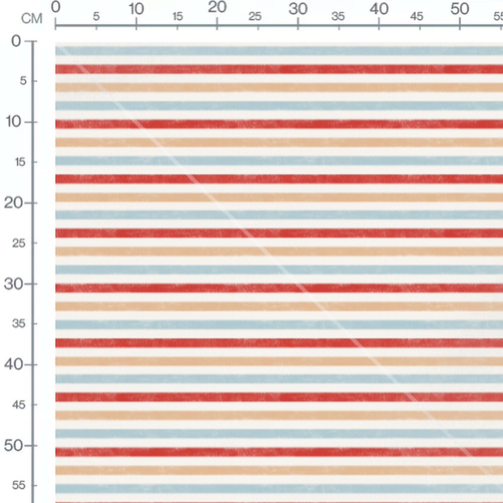 Les rayures rouges sont vives et alternent avec des rayures bleues douces. Les rayures beiges ajoutent une touche neutre au motif. Le fond blanc met en valeur les couleurs des rayures.Les tissus