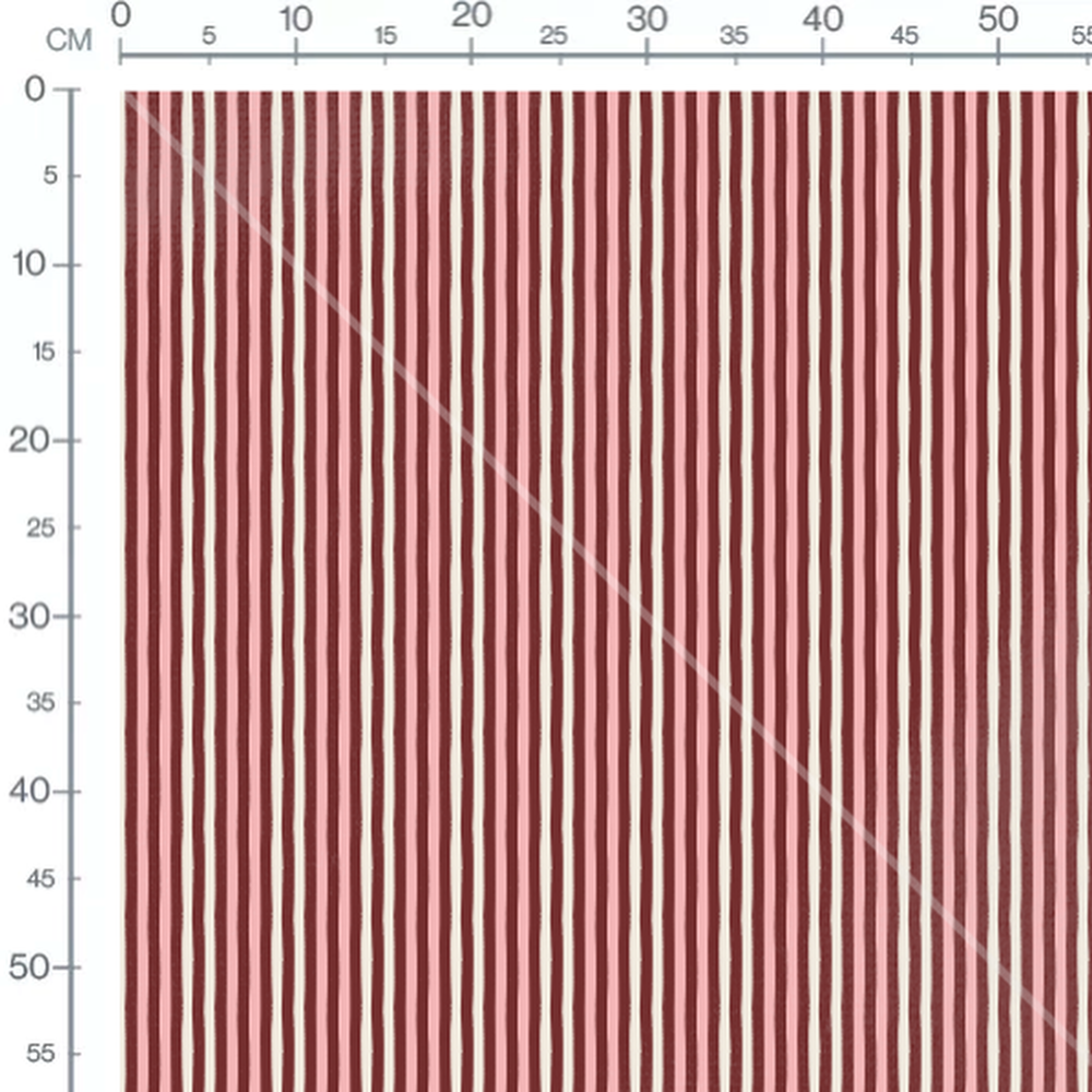 Les rayures rouges sont alternées avec des rayures roses. Le fond beige met en valeur les couleurs des rayures.Les tissus