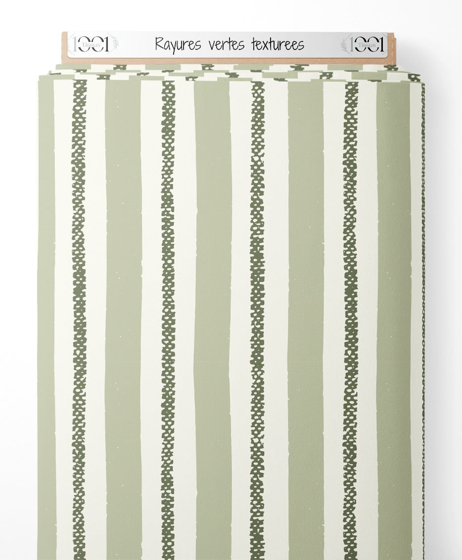 Les rayures présentent une texture irrégulière qui ajoute de la profondeur. Le fond blanc contraste avec les rayures vertes pour un effet visuel distinct.Les tissus