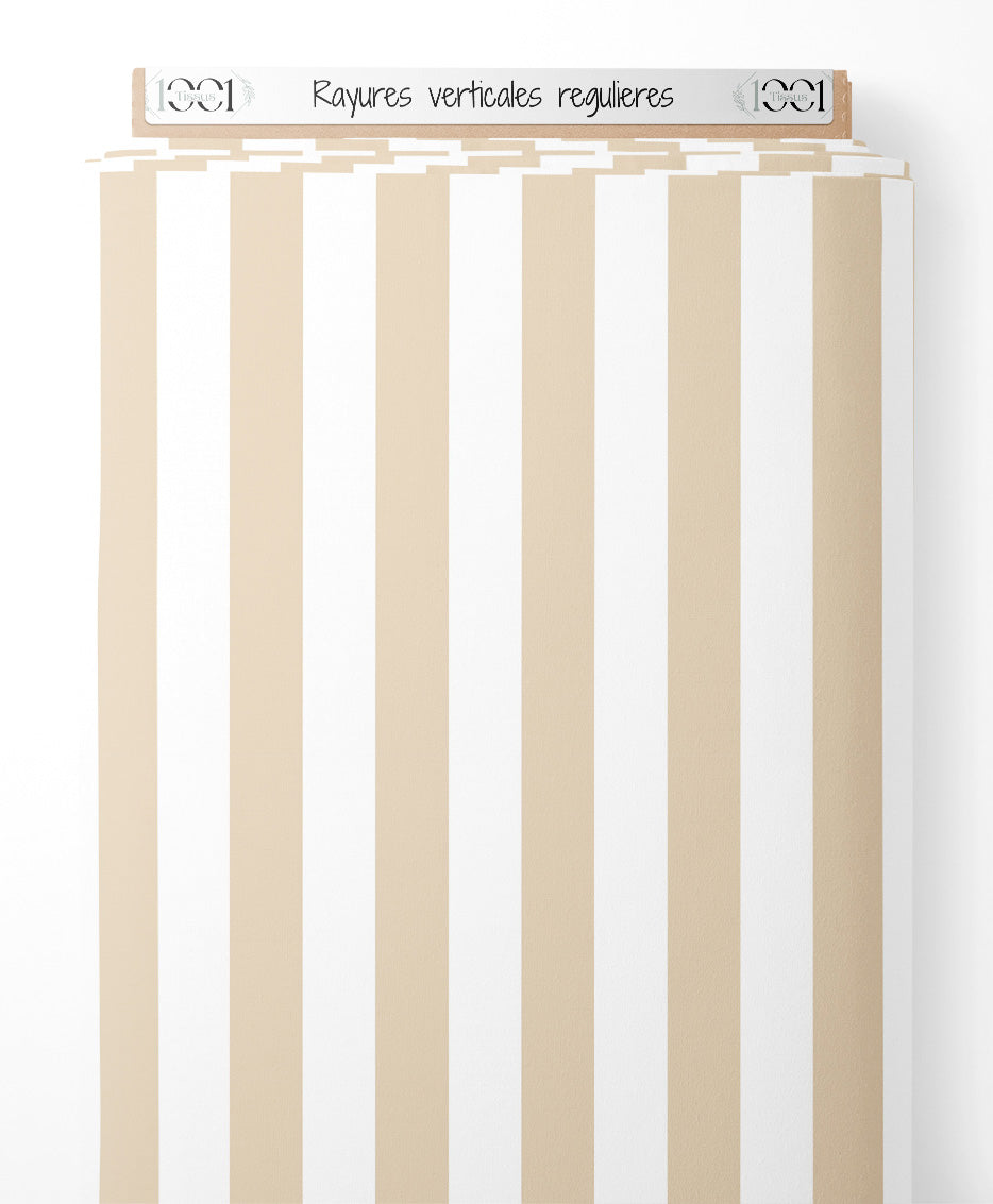 Rayures verticales beiges sur fond blanc. Alternance régulière de couleurs.Les tissus