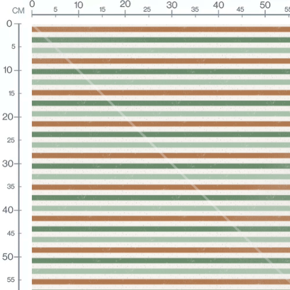 Les rayures alternent entre différentes nuances de vert et de brun. Le fond beige ajoute une touche neutre au motif. L'effet texturé donne un aspect vintage au design.Les tissus