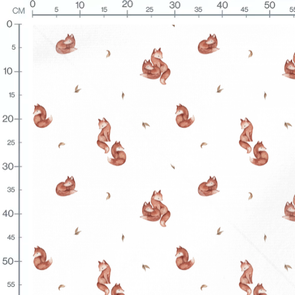 Les renards sont dessinés dans un style aquarelle. Les feuilles ajoutent une touche naturelle au motif.Les tissus