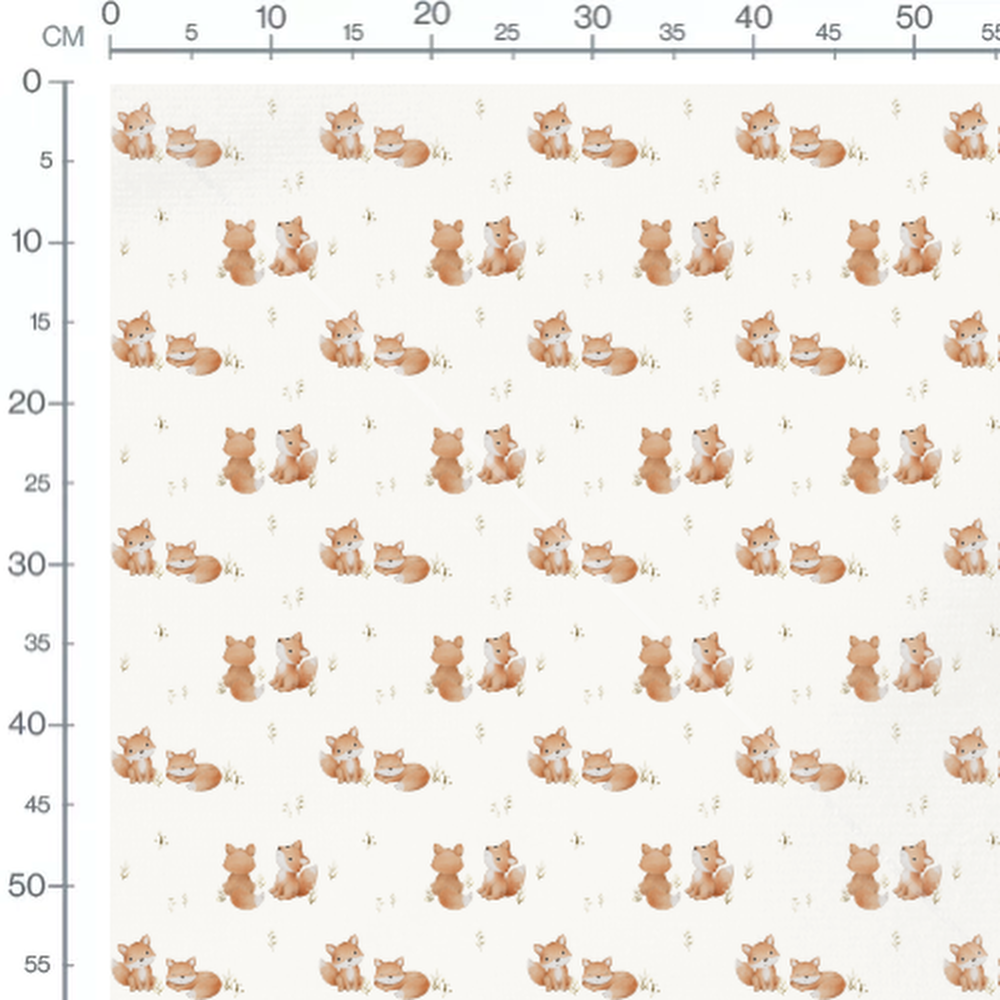 Les renards sont représentés dans différentes positions. Les herbes sont de couleur beige clair, ajoutant une touche naturelle au motif.Les tissus