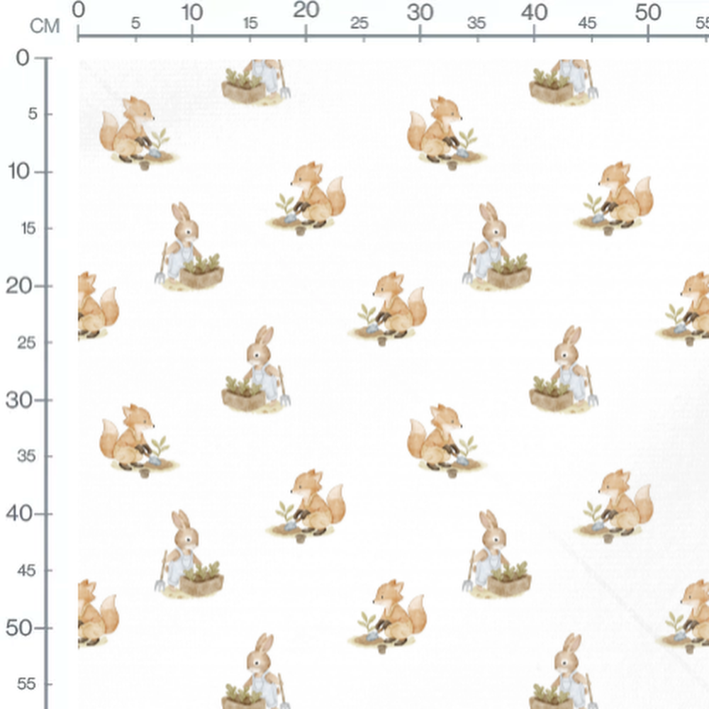 Tissu - Renards et lapins en jardinage