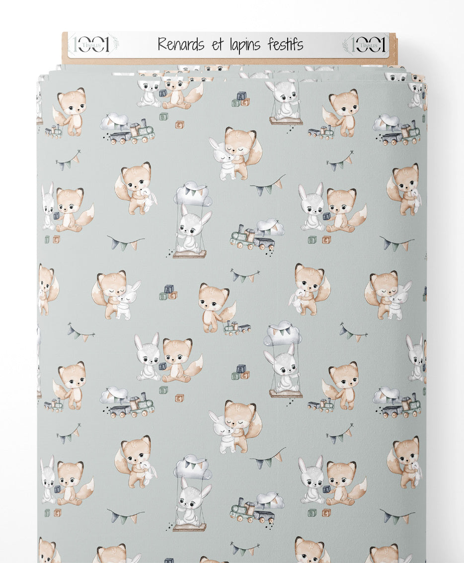 Tissu - Renards et lapins festifs